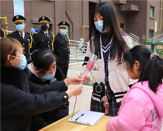 3月6日,在一年一度的“三八”國際勞動婦女節(jié)到來之際,為了讓女同胞們感受到節(jié)日的幸福和快樂,綠地花都國際——菏澤美好嘉物業(yè)精心準備了一支支嬌艷欲滴的玫瑰花,向綠地花都國際的女業(yè)主們送上誠摯的祝福。收到祝福和鮮花,大家露出了美麗的笑容,同時對物業(yè)的暖心服務表示由衷感謝。圖為物業(yè)工作人員向一位女業(yè)主送上玫瑰花。記者 李亞楠 攝