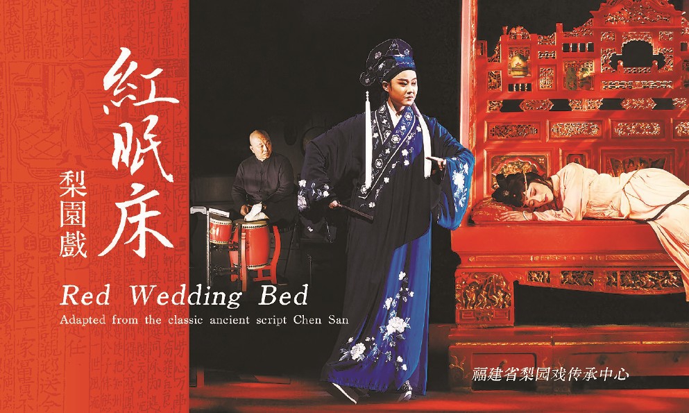 《紅眠床》的基礎,是梨園戲小梨園流派經典古本《陳三》。梨園戲按傳統體例,都以男主人公命名,故這本戲原名《陳三》,民間則約定俗成稱“陳三五娘”,是梨園戲久演不衰的代表劇目。目前存世的劇本包括明嘉靖丙寅(1566年)《荔鏡記》、清順治辛卯(1651年)《荔枝記》、光緒甲申(1884年)《荔枝記》,最早的1566年劇本刊印本,比湯顯祖1598年完成《牡丹亭》創作還要早三十多年呢。