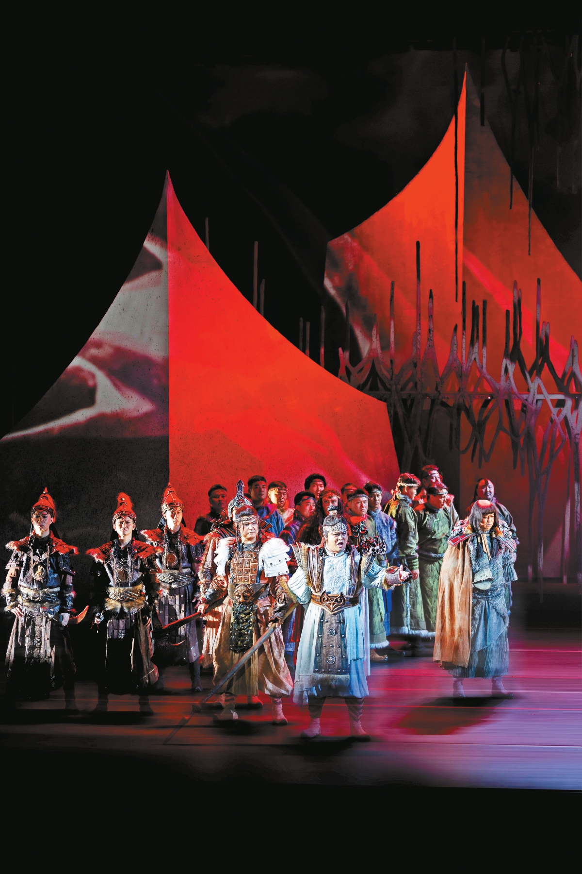 歌劇達(dá)到的高度往往和整個(gè)歌劇制作流程的規(guī)范是分不開的。一部歌劇要想把作曲家的樂譜轉(zhuǎn)化成完整的演出呈現(xiàn)在舞臺(tái)上,需要經(jīng)歷做音樂作業(yè)、坐排、合成等數(shù)個(gè)環(huán)節(jié)。作為舞臺(tái)領(lǐng)域的專家,陳蔚與地方合作的時(shí)候,都不遺余力地推廣科學(xué)的演出制作流程。在排演內(nèi)蒙古藝術(shù)劇院的首部歌劇《江格爾》時(shí),陳蔚從給演員上戲劇表演、形體集訓(xùn)課開始,一點(diǎn)點(diǎn)地將科學(xué)的流程蘊(yùn)含在日常的工作中,對(duì)當(dāng)?shù)氐谋硌蓐?duì)伍和幕后團(tuán)隊(duì)進(jìn)行了系統(tǒng)培養(yǎng)。“要深入挖掘每個(gè)演出團(tuán)體的藝術(shù)特長(zhǎng),真正站在地方院團(tuán)的角度打造劇目,發(fā)揮其特長(zhǎng),彌補(bǔ)其不足。”陳蔚表示,唯有充分調(diào)動(dòng)各方力量,減輕地方負(fù)擔(dān),讓作品越演越有價(jià)值,才能真正留下精品。