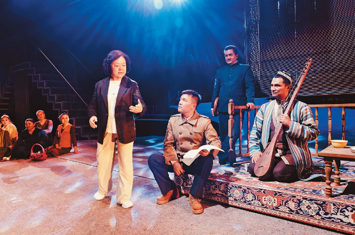 無論是《漢口茶港》中茶商抗日的英雄氣概,《奧涅金》中對(duì)真摯愛情的永恒追求,還是《原野》中對(duì)人性復(fù)雜性的深刻揭示,她的作品總能在具體故事中提煉出超越時(shí)代的價(jià)值。而對(duì)于《木卡姆戀歌——萬桐書》,她更看重作品在鑄牢中華民族共同體意識(shí)方面的現(xiàn)實(shí)意義,“無論從當(dāng)年萬桐書先生到新疆搶救木卡姆,還是我們劇組本身,我的執(zhí)行導(dǎo)演是維吾爾族,演員隊(duì)伍也是多民族的,整個(gè)劇組就是一個(gè)大家庭。”