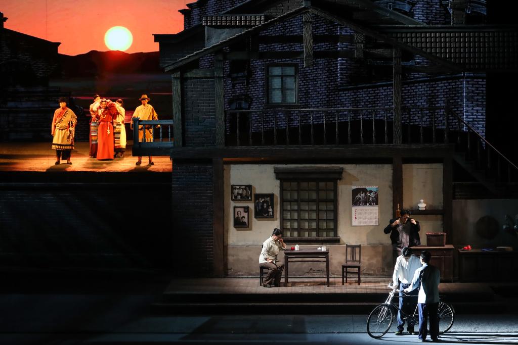 1月28日晚,在甘肅黃河劇院,甘肅省話劇院演員在話劇《青青的阿萬倉》中表演。新華社記者 郎兵兵 攝