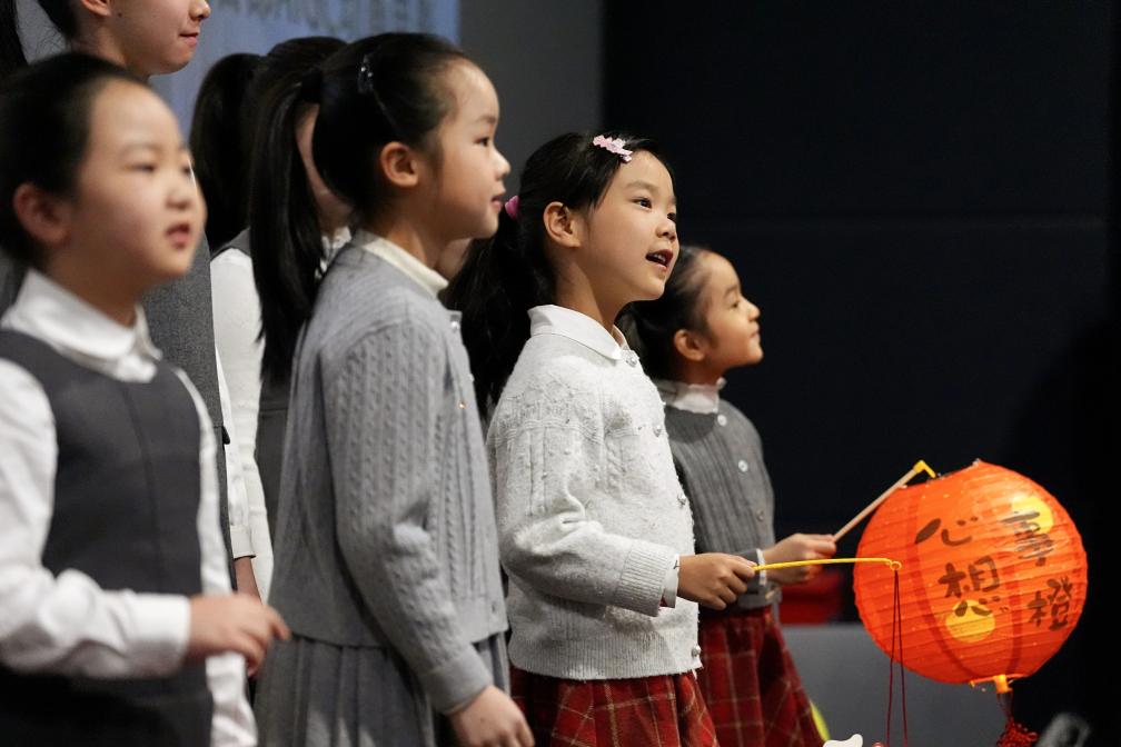 3月1日,小朋友在電影《團(tuán)圓令》的觀影活動(dòng)上演唱主題曲。新華社記者 邢廣利 攝