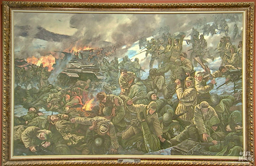 △重現激戰松骨峰場景的油畫(總臺央視記者石丞拍攝)