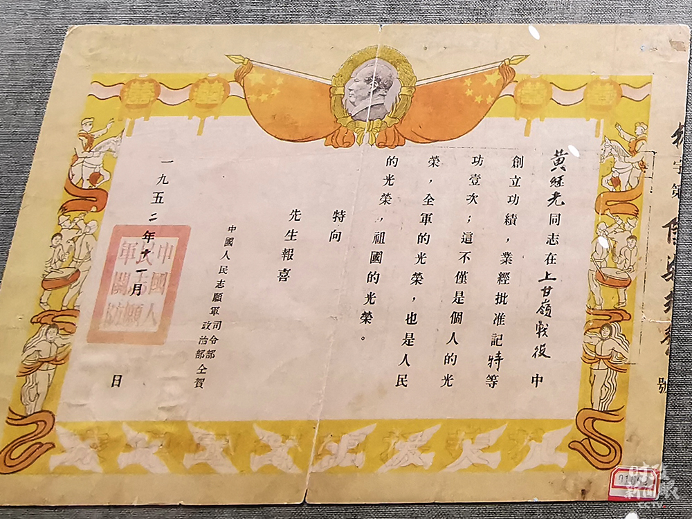 △黃繼光在上甘嶺戰役中榮立特等功。(總臺央視記者荊偉拍攝)