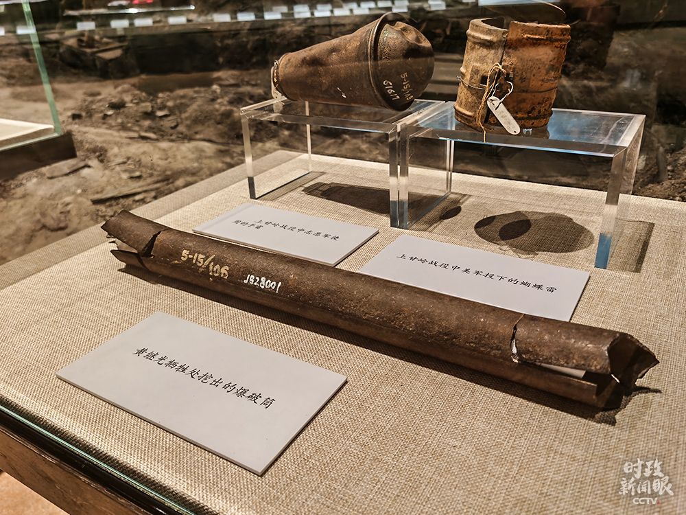 △黃繼光犧牲處挖出的爆破筒殘體(總臺央視記者郭鴻拍攝)