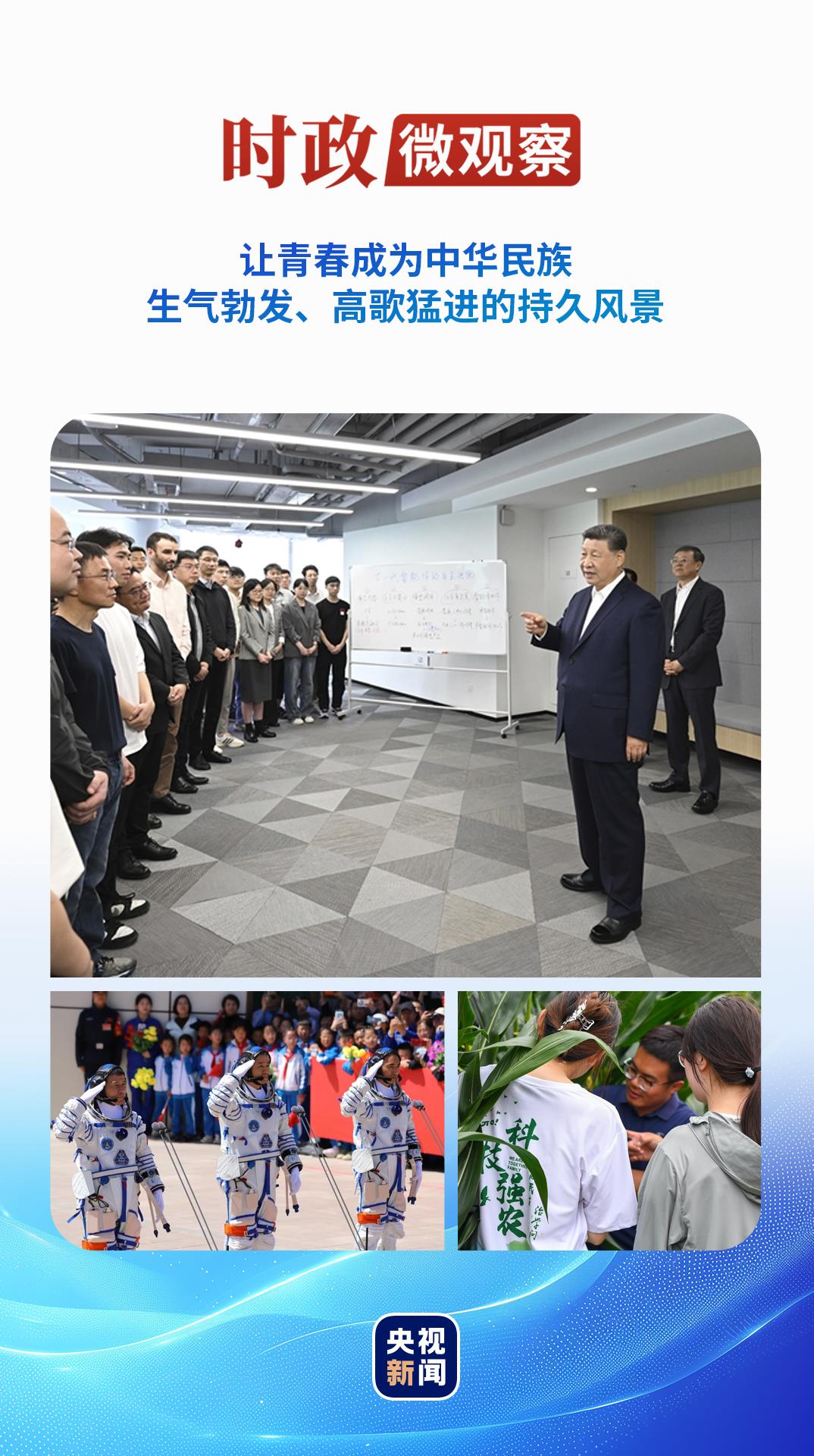 今年五四青年節前,習近平總書記再次來到年輕人中間。4月29日,在上海“模速空間”大模型創新生態社區,總書記同青年創新人才親切交流,勉勵大家“把個人奮斗同國家前途命運緊緊聯系在一起,跑好歷史的接力棒,在推進中國式現代化的寬廣舞臺上綻放絢麗的青春光彩”。