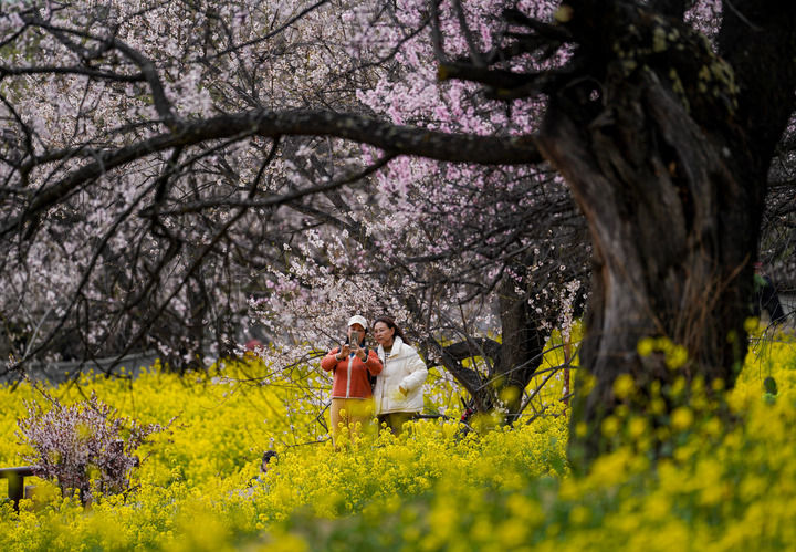 游客在西藏林芝市嘎拉村賞花(2025年4月2日攝)。新華社記者 晉美多吉 攝