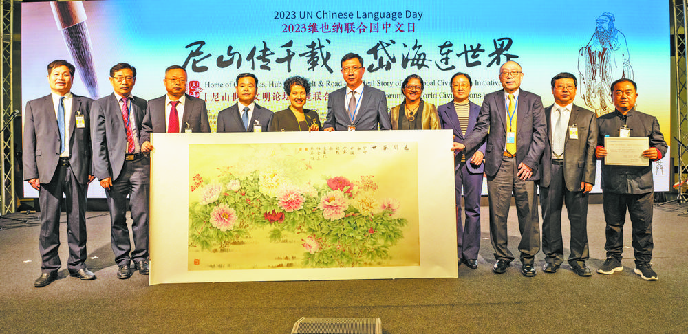 2023年5月,巨野工筆牡丹畫走進奧地利維也納聯合國城