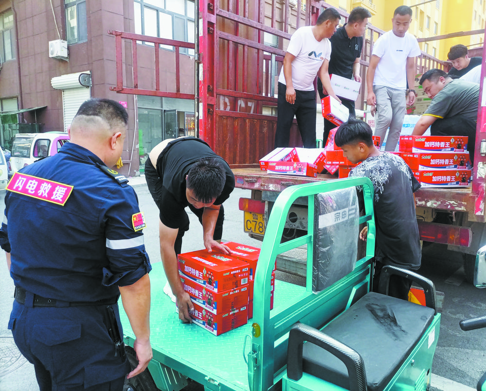 “涿州加油!河北加油!”8月4日下午,菏澤閃電救援隊聯合愛心企業山東梵虎教育,為河北省涿州市捐贈價值兩萬余元的純凈水、方便面、火腿腸等救災物資。這些物資裝車后,當即被送往河北省涿州市。菏澤閃電救援隊隊長李合明說:“菏澤閃電救援隊作為民間救援力量,除了派出人員去一線救災外,還聯合愛心企業為廣大涿州人民獻一份愛心。”