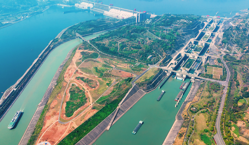 2023 年一季度,三峽樞紐航運(yùn)通過(guò)量 3989.36 萬(wàn)噸,同比增長(zhǎng) 22.08%,創(chuàng)投運(yùn)以來(lái)一季度航運(yùn)通過(guò)量最高紀(jì)錄。圖為船舶有序通過(guò)三峽雙線五級(jí)船閘和升船機(jī)(2023 年 4 月 1 日攝) 鄭家裕攝 / 本刊
