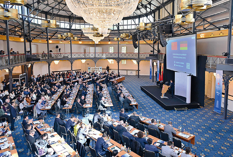 2024“投資中國”系列活動德國專場4月5日在巴登—符滕堡州首府斯圖加特市舉行,活動吸引德國工商界代表超300人參加。圖為當日拍攝的活動現場。 新華社記者 任鵬飛/攝