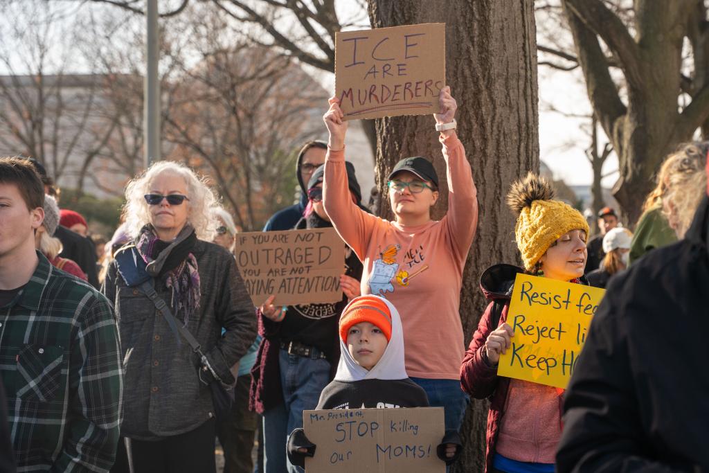 1月11日,在美國首都華盛頓,民眾抗議移民與海關(guān)執(zhí)法局暴力執(zhí)法。近日,美國多地民眾舉行游行示威,抗議移民與海關(guān)執(zhí)法局(ICE)執(zhí)法人員在明尼蘇達州明尼阿波利斯市開槍打死一名美國籍女子。新華社發(fā)(李源清攝)