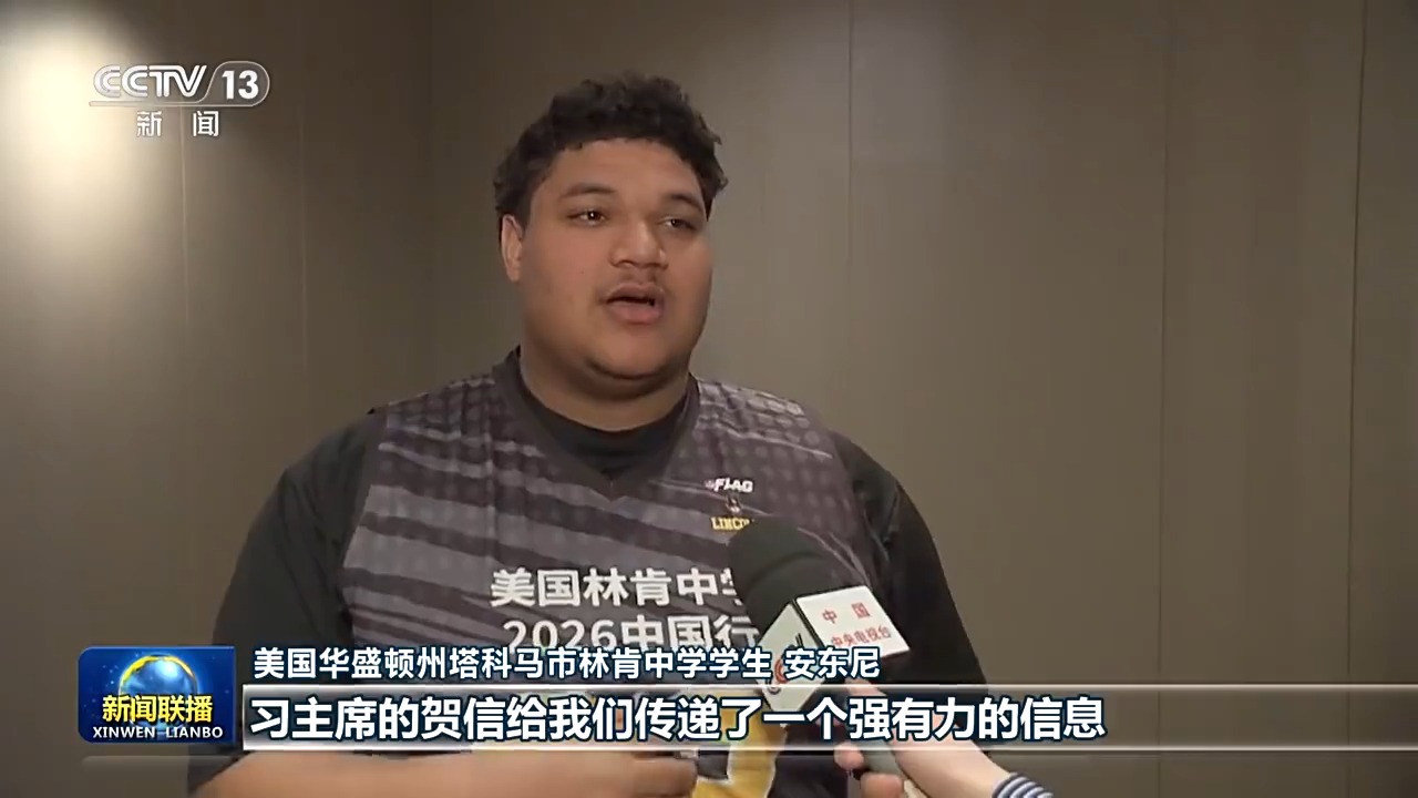美國華盛頓州塔科馬市林肯中學學生 安東尼:習主席的賀信給我們傳遞了一個強有力的信息,讓我們堅信彼此學習、相互理解就能讓人心貼得更近。我要把我親身體驗所經歷的一切,把我看到的真實的、充滿活力的中國,講給我家鄉的朋友們聽。
