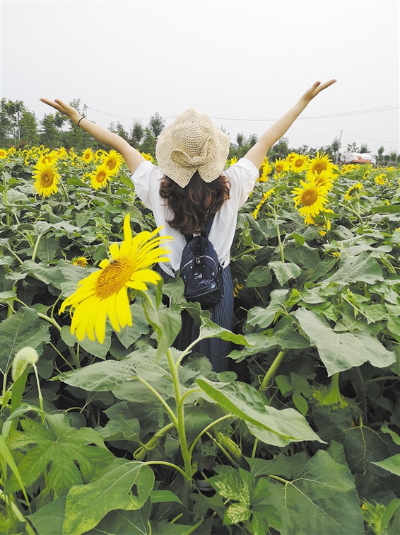 趙巍說(shuō),面對(duì)這片花海,不禁詩(shī)情滿懷。那一朵朵盛開(kāi)的葵花,葉如蒲扇,花若金盤(pán),高矮相間,茁壯挺拔,似乎在不停地追尋著陽(yáng)光。