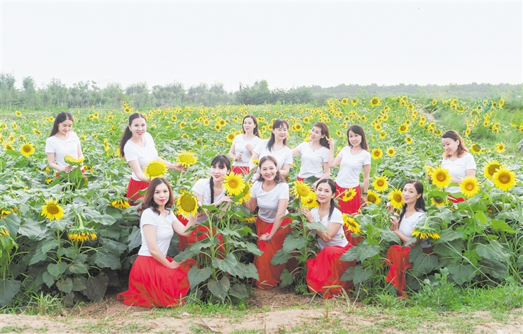 看,在烈日下,葵花飄香,招來(lái)了勤勞的小蜜蜂,也吸引著熱愛(ài)生活的人們。徜徉其中,感受著寧?kù)o清新的花海氣息、自然純真的田園生態(tài),令人心曠神怡、流連忘返。