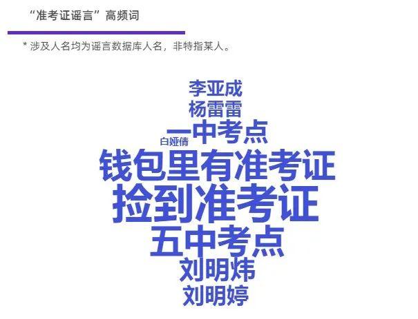 丟準(zhǔn)考證事件每年都有發(fā)生,一方面讓信息真假難辨,迷惑性強(qiáng),不少網(wǎng)民正出于善于轉(zhuǎn)發(fā),給了謠言可乘之機(jī);另一方面,其較高的出現(xiàn)頻率、舊謠新傳等特點(diǎn),也為識謠辨謠提供了契機(jī)。中國互聯(lián)網(wǎng)聯(lián)合辟謠平臺(tái)對近3年此類謠言進(jìn)行梳理,歸納出此類謠言高頻詞,看到它們,就別轉(zhuǎn)了!