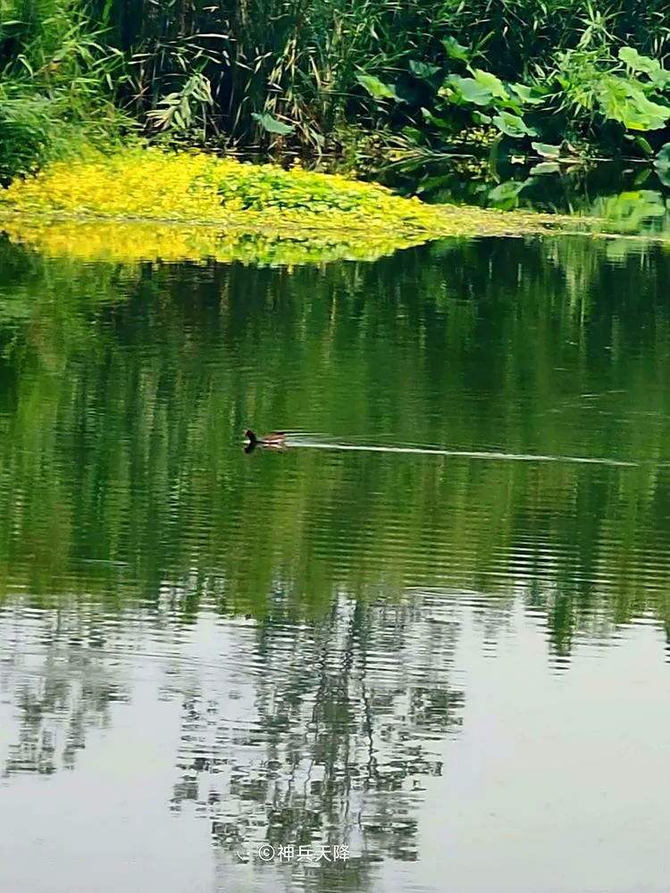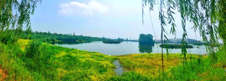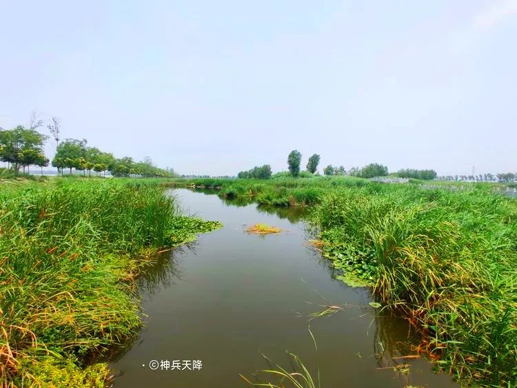 河水清明,蘆葦、香蒲、荷花、浮萍等水生植物繁密茂盛,鷺鷥起落,野鴨弄波,游魚戲水,風光宜人。