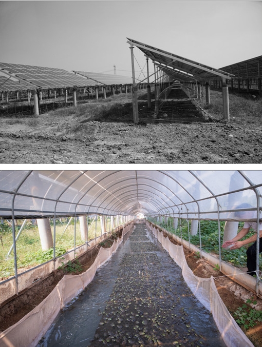 昔日的荒涼地,今日的聚寶盆。村民在光伏下面養(yǎng)牛蛙、養(yǎng)鴿子、養(yǎng)鴨、種植蔬菜等。