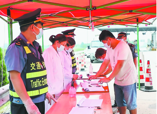 8月22日,在菏寶高速東明北收費站,疫情防控聯合檢查站工作人員正在對外來車輛和人員進行安全排查作業。據了解,東明縣毗鄰的省及周邊部分地市相繼確定為中、高風險地區,根據疫情防控需要,現已在東明北高速口(菏寶高速)、G106東明北、G106東明南、S252東明南、黃河大堤焦園與河南交界處設立疫情防控聯合檢查站,同時將境內四座黃河浮橋全部拆除。對東明縣戶籍或在東明縣工作、經商等常住人員,確需進入東明的,由屬地鎮街疫情防控指揮部負責接回,并做好隔離、核酸檢測等后期處置工作,并對來自中高風險地區的車輛進行勸返,確保逢車必檢、逢人必測,筑牢防控第一道防線。