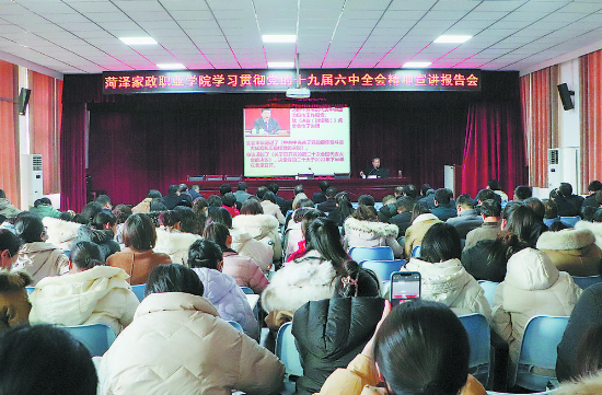 中國菏澤網消息(通訊員 張 瑩 記者 王富剛)日前,菏澤家政職業學院舉辦學習貫徹黨的十九屆六中全會精神宣講報告會,邀請市委講師團副團長袁增華作專題報告。院黨委班子成員、副科級以上干部、副高級職稱及以上專業技術人員、全體教研室主任、全體黨員參加會議。
