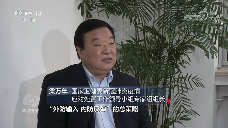 國家衛生健康委新冠肺炎疫情應對處置工作領導小組專家組組長梁萬年說:“總書記明確強調要繼續堅持‘外防輸入、內防反彈’總策略和‘動態清零’總方針是非常重要的,進一步明確了我們的方向,進一步彰顯了中國共產黨人、中國政府對保護人民身體健康、對維護人民生命安全的堅定信心。”