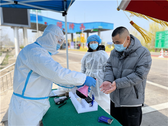 “您好,請佩戴好口罩,給您測個體溫。”“請出示您的健康碼和行程碼。”“請問您從哪里過來,有沒有做核酸檢測?”3月23日 ,在菏寶高速入口菏澤西收費站,菏澤高新區(qū)萬福街道辦事處工作人員用手持體溫檢測儀對出入車輛乘員進(jìn)行體溫檢測,指導(dǎo)他們掃碼,登記相關(guān)信息,確認(rèn)沒有異常后才會放車輛通行。據(jù)悉,為全力做好菏寶高速入口進(jìn)出車輛防疫管控,萬福街道辦事處聯(lián)合街道衛(wèi)生院、公安交警等相關(guān)部門,集結(jié)機關(guān)黨員干部、交警、衛(wèi)健人員、志愿者等力量,在菏寶高速入口設(shè)置了疫情防控便民服務(wù)臺,聯(lián)防聯(lián)控,持續(xù)作戰(zhàn),堅決筑牢“外防輸入”堅實防線,守牢疫情防控“前哨”。記者 王 浩 攝