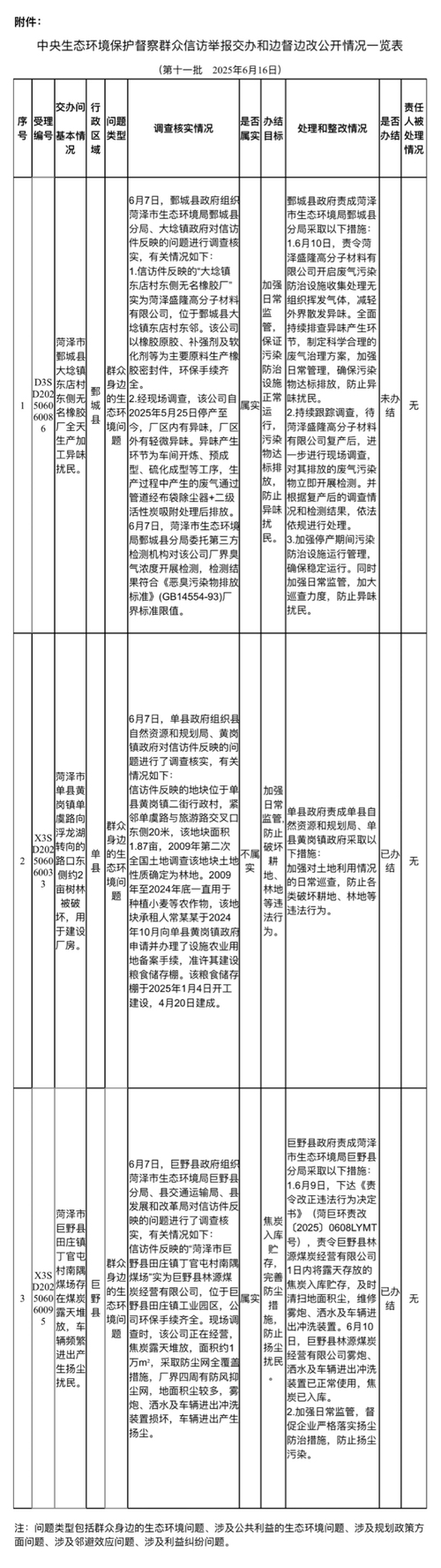 附件:中央生態(tài)環(huán)境保護督察群眾信訪舉報轉辦和邊督邊改公開情況一覽表(第十一批)