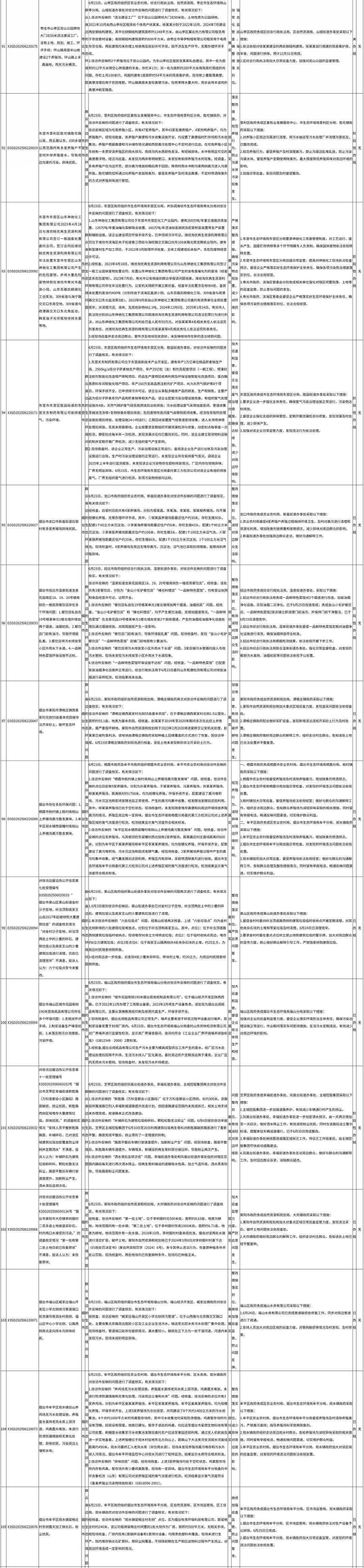截至7月2日,中央第三生態環境保護督察組交辦山東省的第二十七批215件信訪件,已辦結106件,階段性辦結99件,未辦結10件。其中,責令整改61家,立案處罰11家。根據督察要求,現予以公開。